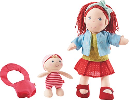 - -Little doll lovers will flip for this adorable "babywearing" doll duo! This unique set from HABA includes both a 12" soft doll as well as a baby (measuring 5") with baby carrier.