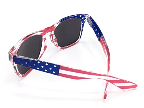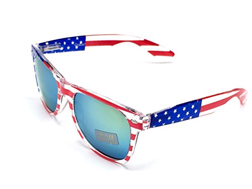 Product Description Brand New Sunglasses. The lens have small defects in the flag print.Tiny spots were missed when the flag print was put on the lens. They are not Scratches! The glasses have tags!American Flag Sunglasses! Adult Sunglasses! Metal Frame with Flag Lenses 0