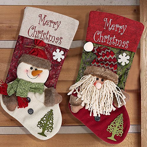 - 2 Pieces: This adorable stocking set features two plush smile Santa, Snowman and Reindeer character designs that almost come to life. From delicate knitted scarf, cute little reindeer and snowman, and their big holiday smile, this set of stocking is sure to make all smile.