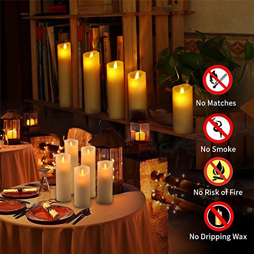 - 【Safe and Clean】The LED Flameless Candles there is absolutely no fire risk; Never worry about safety.led candles give you a realistic appearance without the fire hazards, smoke or messy dripping wax. Just replace your traditional burning candle!Safe To Use Around Children and Pets.No longer will you have to put up with the annoyance of cleaning candle drips.