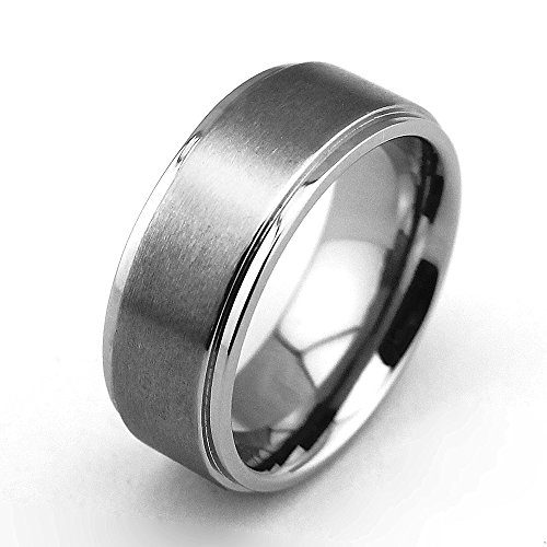 - Feature : Modern & classy: Highly durable titanium with matte finish center & Unique step edge of modern look / Polished dual grooves run along the outside of the band develop a stremlined appearance / Extra wide of 8mm features a strong and powerful look yet no pressure on finger as the titanium material is extremely light weight / The comfort fit interior makes this ring incredibly easy to wear / All rings come with a free ring Box!