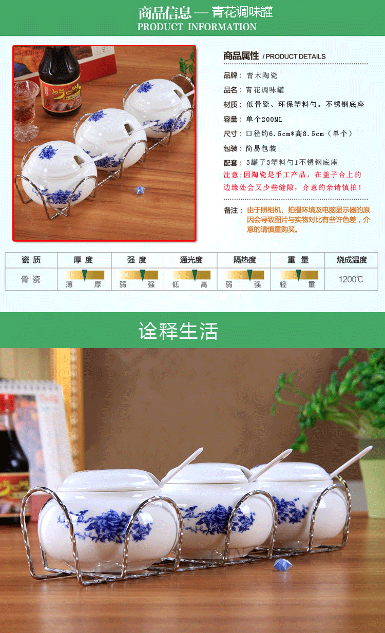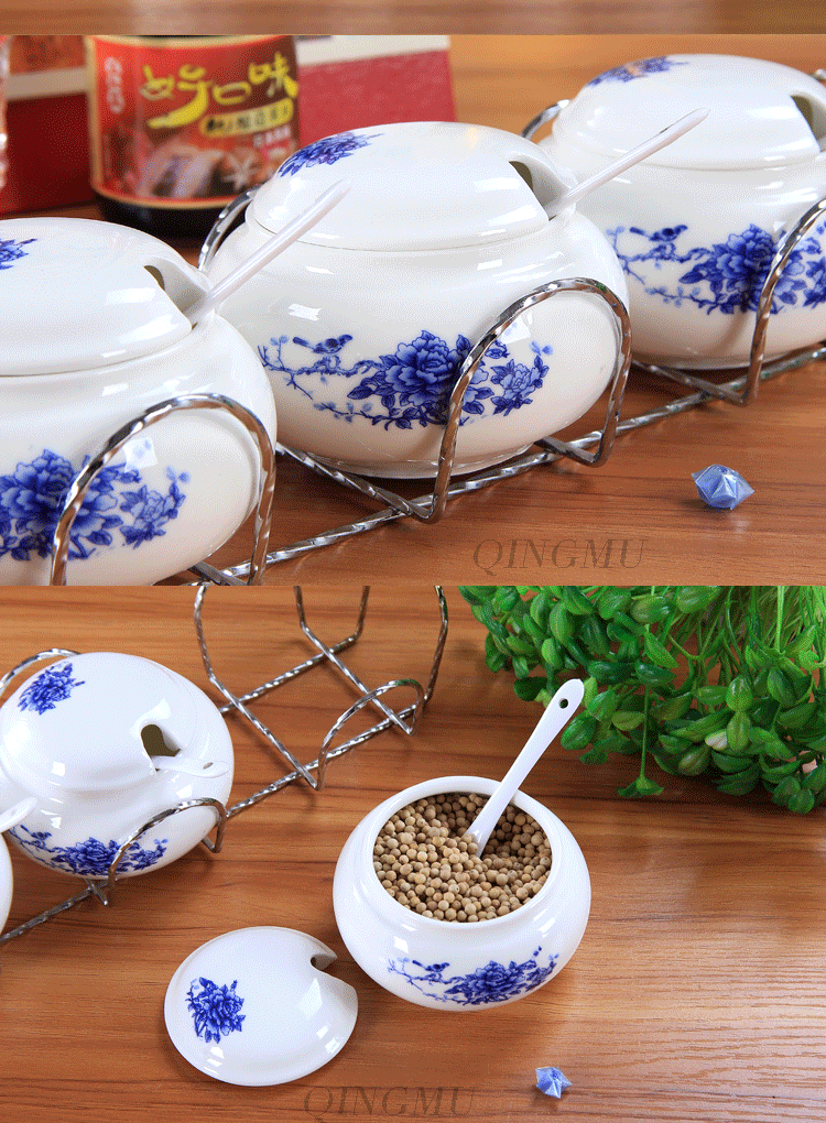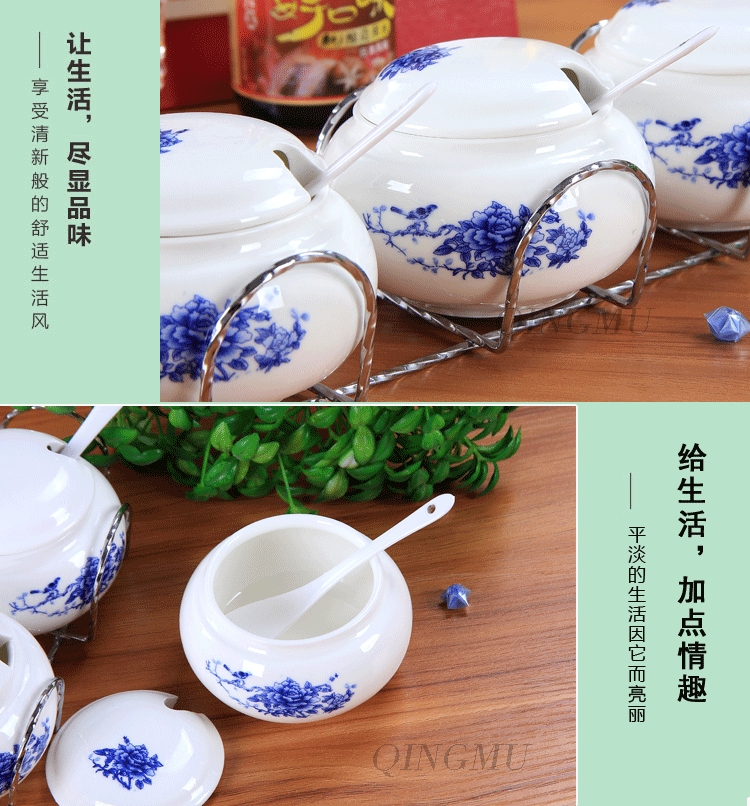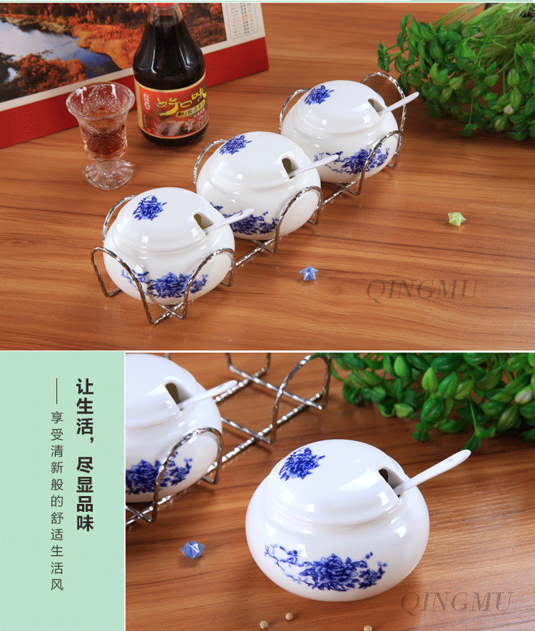 创意 厨房用品 陶瓷调味罐调料罐 调味盒调料盒调味瓶套装 配架子
