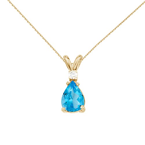 This 14k yellow gold pendant features a lovely 9x6 mm blue topaz and a .05 ct diamond. Includes 18" chain and gift box.