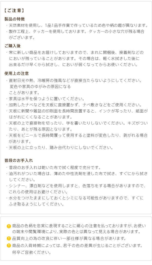 ●材質:天板-天然木化粧繊維板(ビーチ)、引出前板-天然木化粧合板(ビーチ)、脚部-天然木(ビーチ)・ラッカー塗装