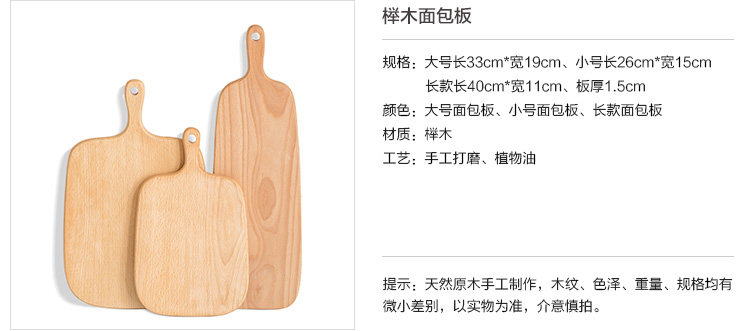日式榉木环保面包板把手托盘木砧板烘焙用具厨房水果板