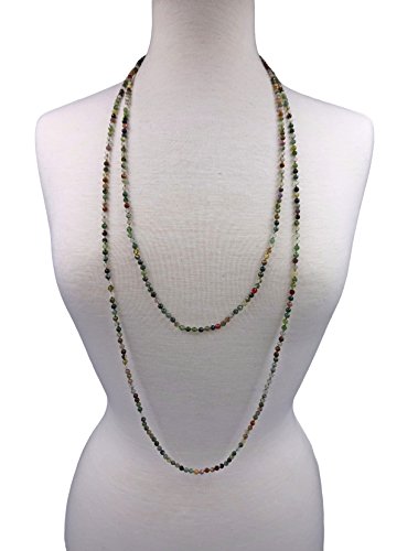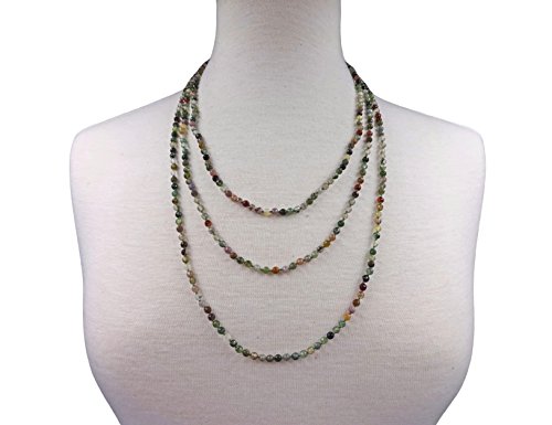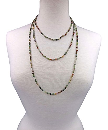 70" long infinity ultra versatile beaded faceted cut natural fancy jasper stone necklace. It can be worn as a long, layered, torsade or choker style necklace or as a wrap bracelet.