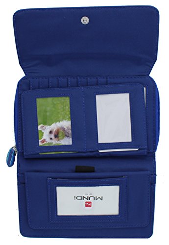 8 card slots and 6 ID windows Zipper compartment holds 2 gusseted pockets and 1 zip coin pouch Built-in checkbook cover 7.5" x 4.5" x 1.5" Brand : Mundi MPN(PartNumber) : 4331331758 EAN : 0738676677942 Package Dimensions(LxWxH) : 22x11x5cm ; 272 g