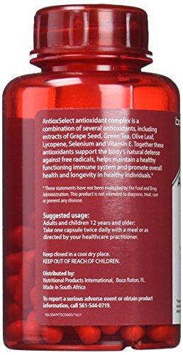 ReleaseDate : 2017-04-11 Studio : Nutritional Products International Publisher : Nutritional Products International Binding : Health and Beauty Product Description AntioxSelect antioxidant complex is a combination of several antioxidants. Together these antioxidants support the body's natural defense against free radicals, help maintain a healthy functioning immune system and promote overall health and longevity in healthy individuals 0