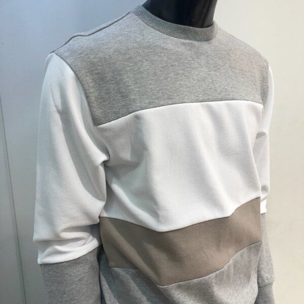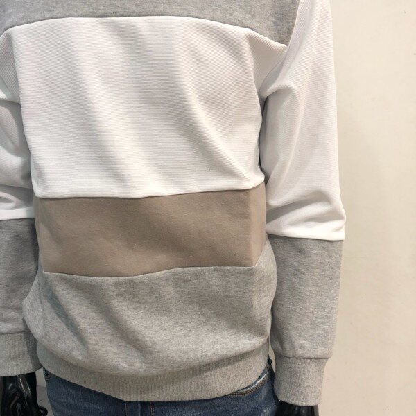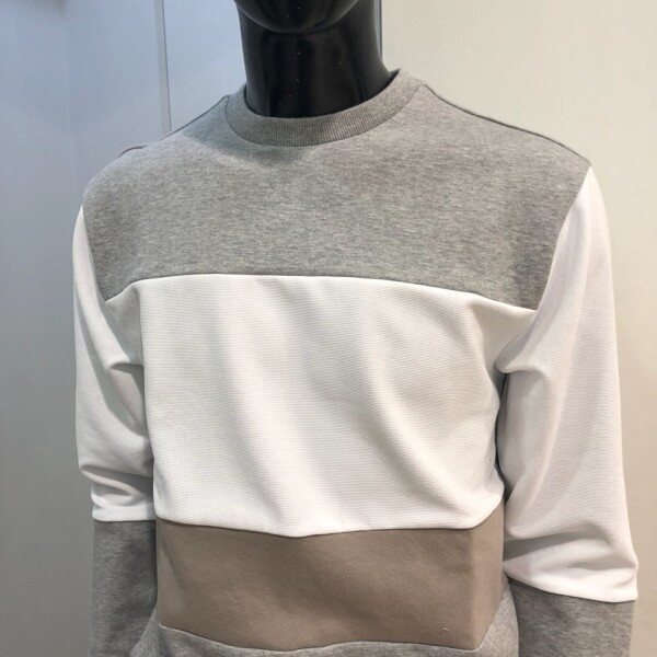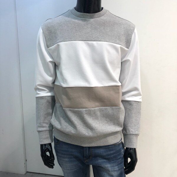 남자 3도 컬러블럭킹 맨투맨 입니다. 정사이즈 핏으로 적당한 총 기장길이와, 회색.흰색.베이지 3컬러를 적절하게 섞어 블럭형태의 디자인으로 심플하면서도 깔끔한 느낌의 블럭 맨투맨 입니다. 가장 인기 있는 컬러 입니다.
