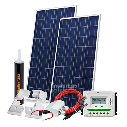 -. Feature : 2 x Unlimited Solar High Efficiency 160 Watt Polycrystalline Solar Panel / 1 x Unlimited Solar 30 Amp 12/24 Volt PWM Charge Controller with Remote Display / 1 x Unlimited Solar RV/ACC-2, RV Accessory Kit / Kit will provide on average 1900 Watt Hours (Wh) or 100 Amp hours of charge per day (depends on sunlight availability) / Designed for RVs, cabins, homes, boats, back-up and remote power use