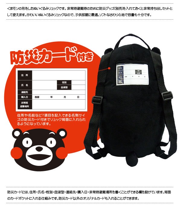 | 子供部屋に最適、くまモンの防災ぬいぐるみリュック!! |