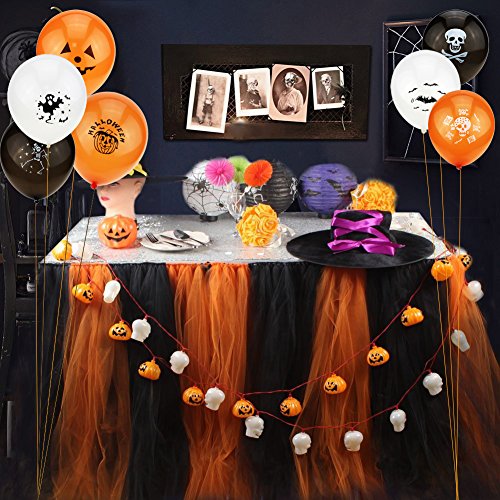 ABOUT 7 PATTERNS: Three base colors are white ,orange and black. The balloons were printed Skeleton Ghosts Pumpkin Bat Spider Halloween element.