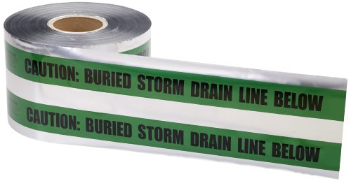 Mutual 17774 Polyethylene Underground Storm Drain Detectable Marking Tape, 1000' Length x 6" Width, Green