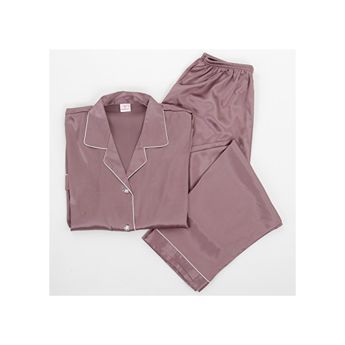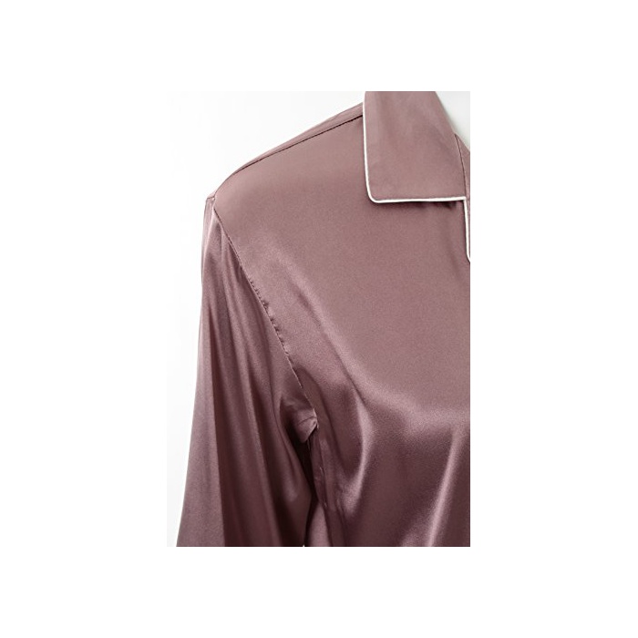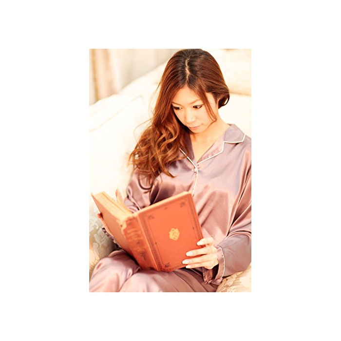 Gifts of Brilliance 4색 레이디스 파자마 엘레강트앞 열림 긴 소매견 실크 풍여성용 룸 웨어 실내복 퍼플 레드 베이지 블루 선물 기프트 포장가 (3
