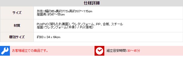 【商品について】■サイズ:外寸:(約)幅65x奥行き77.5x高さ107~115cm■カラー:ブラック ホワイト■素材:ウレタンフォーム、PP、合板、スチール(座面:ウレタンフォーム、PVC)■その他:・生産国:中国・お客様組立商品です ※メーカー直送品、商品代引き不可