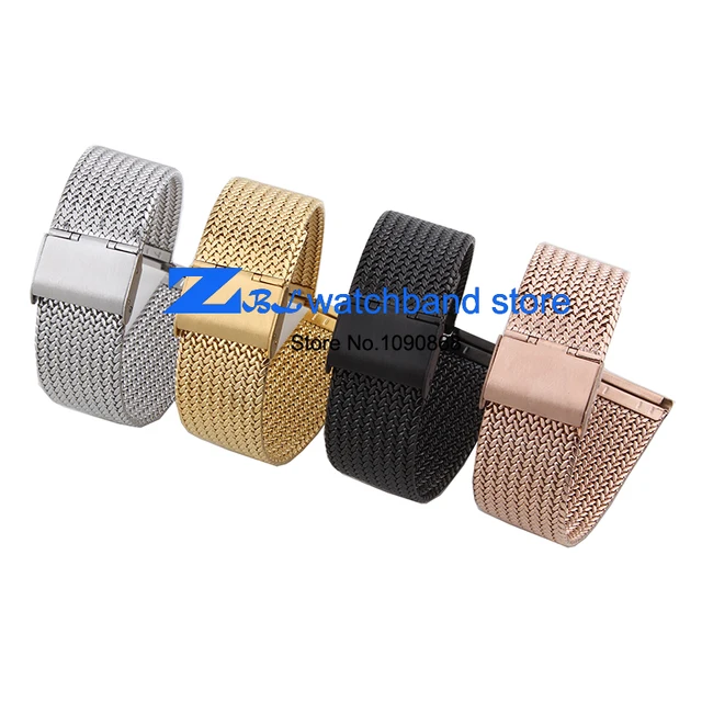 | [해외] 밀란 스테인레스 스틸 메쉬 스트랩 팔찌 16 미리메터 18 미리메터 20 미리메터 22 미리메터 24 미리메터 초박형 짠 시계 밴드 금속 손목 |