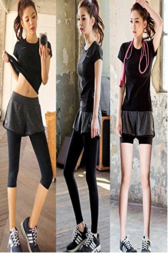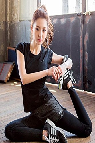 Arakan Chicca 요가 웨어 레이디스 런닝 트레이닝 상하 팬츠 반소매 세트 업 C1 (T셔츠+7 부 XXL)
