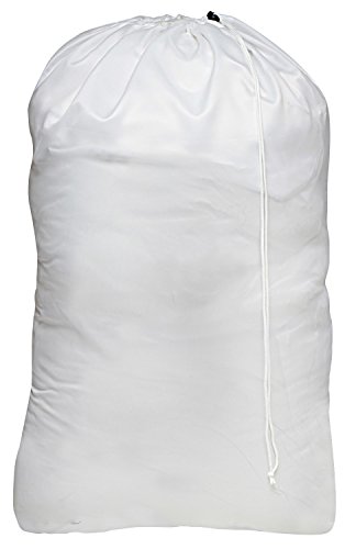Nylon Laundry Bag - White, 30” x 40” - Sturdy rip and tear resistant nylon material with drawstring closure. Ideal machine washable nylon laundry bags for college, dorm and apartment dwellers.
