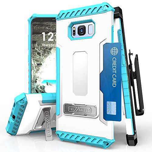 -. Feature : Compatible with Samsung Galaxy S8 ONLY (2017 Released Date) Phone is not included. / Case included 1 X Lanyard Loop, 2 X HD screen protector and 1 X rotatable belt clip holster. A locking swivel belt clip is easily locked into an extended position and provides different viewing angles while watching movies or video calls, also rotatable 360 degrees. Makes it more convenient to clip on your belt or bag strap. The clear screen protector offers superior protection from scratches, dust, and dirt that may be accumulated from everyday use. / Built-in aircraft metal kickstand allows for comfortable hand-free media viewing. Hidden card storage is inside the TPU + PC Case for securely stores your ID, credit card or debit card. So you can always have access to your most important card and keep your card more safe. Please remove the top hard shell case to access your card. / Custom made slim fit heavy duty protection case covers the full body of your phone. Corners feature double-thick TPU for outstanding protection against bumps, scratches or drops. The case lift the phone off the flat surface, it also protect the phone camera and screen. Multi-colors to choose from in order to show off your characters. / Allow to talk on the phone without opening the case, direct access to all features of the device without removing the case, such as volume buttons, headphone jack and cameras. Easy snap on/off installation.