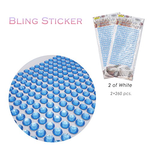 Beautiful Bling Shining Rhinestone Crystal Sticker, 260×2 pcs.Colorful Paster Decoration, Self Adhesive Sticker for Girls, 2 in 1 Package, by Lancer La (2 of Blue)