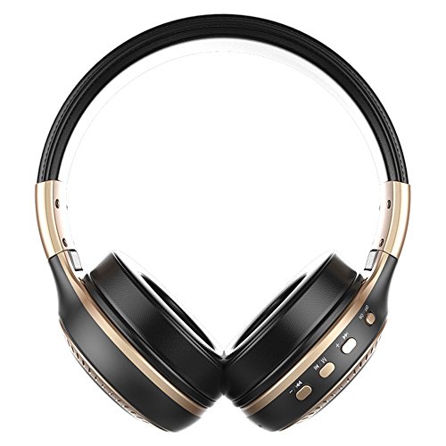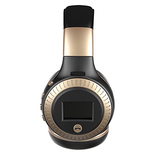 Desxz B19 LED Display Screen Wireless Bluetooth Headset Stereo Handsfree with Mic FM Radio TF Card Slot for Computer PC Smartphone (Gold)
