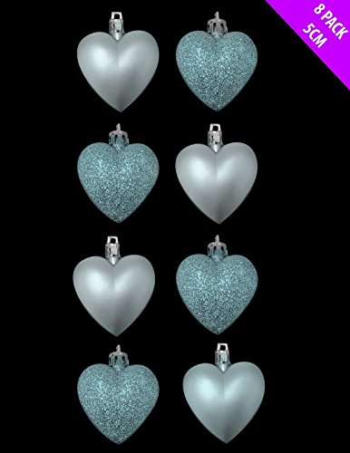 8 x 5cm Baby Blue / Ice Blue Matt Heart Shaped Christmas Tree Baubles