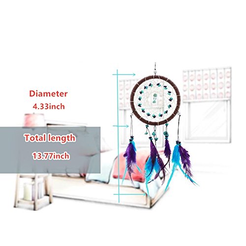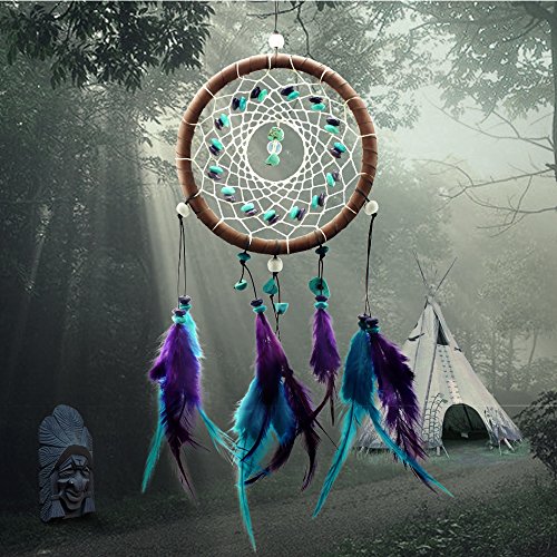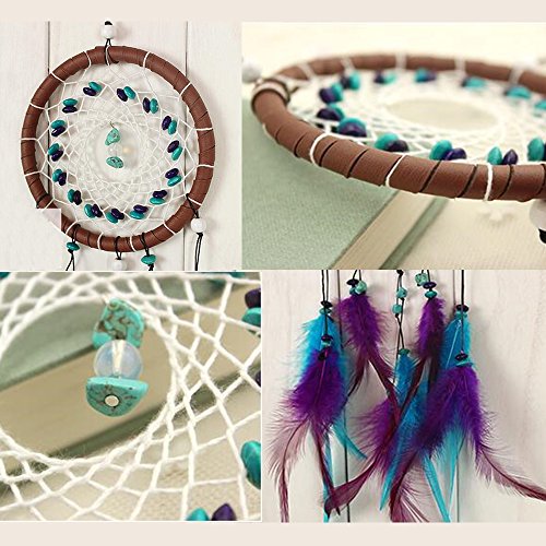Dreamcatcher Material: colorful REAL feathers ,blue stones,leather circle; Beautiful Wall Art and Great Gift! Plus Peaceful Dreams