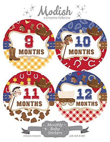 12 Monthly Baby Stickers, Western, Cowboy, Boy, Baby Belly Stickers, Monthly Onesie Stickers, First Year Stickers Months 1-12, Cowboy Hat, Cowboy...