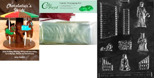 Cybrtrayd Nativity Scene Chocolate Mold with Chocolatier's Bundle of 25 Cello Bags, 25 Red Twist Ties and Chocolatier's Guide