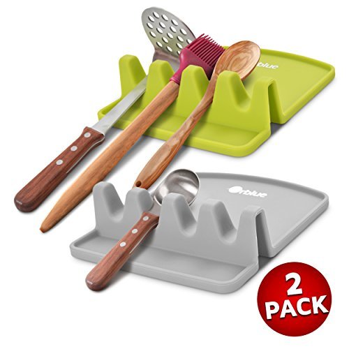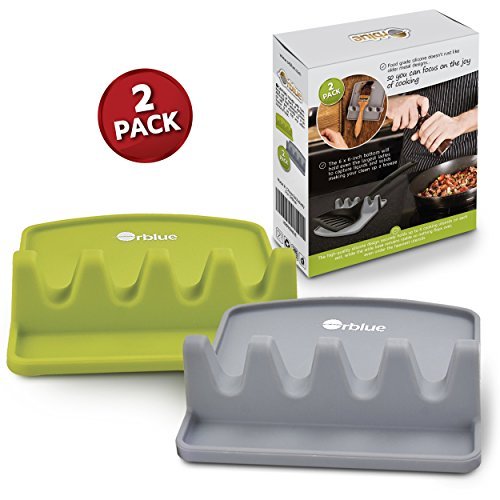 Studio : Orblue Publisher : Orblue Product Description With broad 6 x 6 x 2-inch bases and a mere 0.035 ounces, these lightweight spoon holders are time savers are stackable and ready to serve. See images above. Simply flop these spoon rests onto any counter top or even glass stove space for a quick utensil rest. PLUS, the premium trays contain slop and are spill free to make your after-prep cleanup a snap.