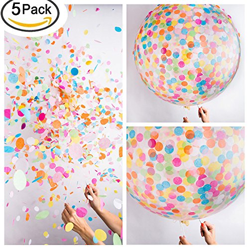 Giant Round Confetti Balloons 36 inch Latex Balloon Filled with Multicolor Confetti For Wedding or Party Decorative (5 Pcs)