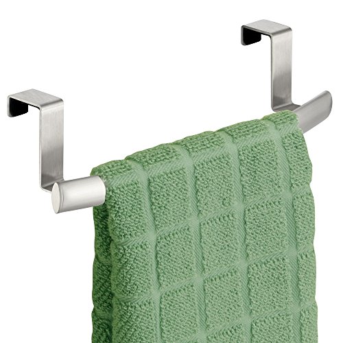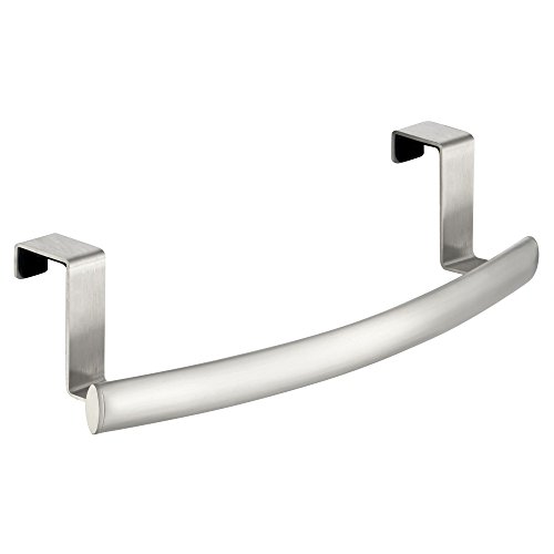 mDesign Kitchen Over Cabinet Curved Stainless Steel Towel Bar – Hang on Inside or Outside of Doors, for Hand, Dish, and Tea Towels – 9.75" Wide, Pack of 2, Brushed Stainless Steel