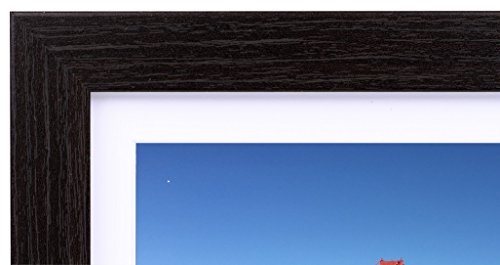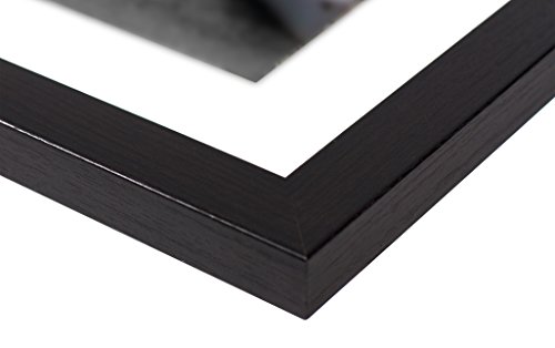 Frametory, Black Wood Grain Finish Looking Photo Frame with Ivory Color Mat for 4x6 Picture & Real Glass (1, 5x7)