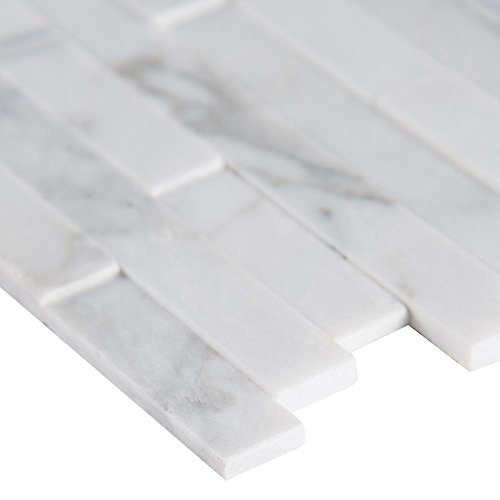 Vogue Peel & Stick Calacatta Carrara Interlocking 3D Random Pattern Marble Mosaics for Kitchen Backsplash & Wall Tile (5)