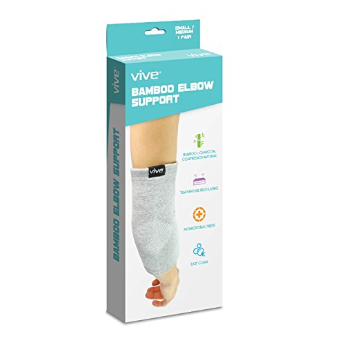 Elbow Sleeve by Vive (Pair) - Bamboo Charcoal Compression Elbow Support for Tendonitis, Golfers & Tennis Elbow - Men & Women (Small / Medium)