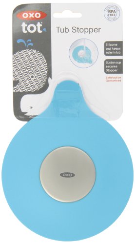 The OXO Tot Tub Drain Stopper keeps water in the tub during bath-time. Soft, flexible silicone makes it safe for little fingers, and a suction cup secures the Stopper to the tub floor with a water-tight seal, keeping water (and toys) from escaping down the drain. When the Stopper is not in use, the suction cup is convenient for storing the Stopper on the wall.