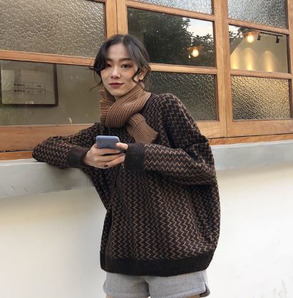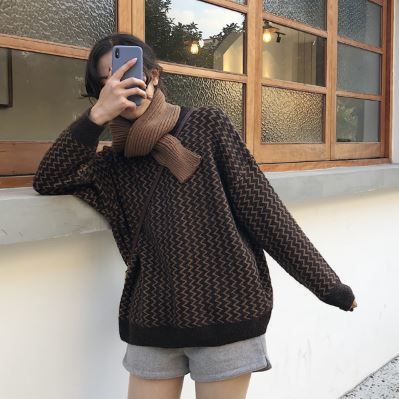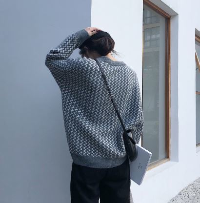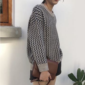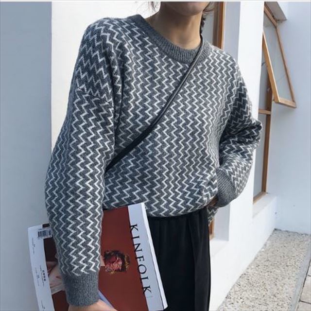 ギザギザストライプ柄が個性的なジャガードニットプルオーバーです。
