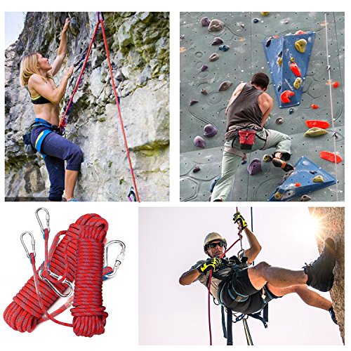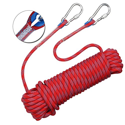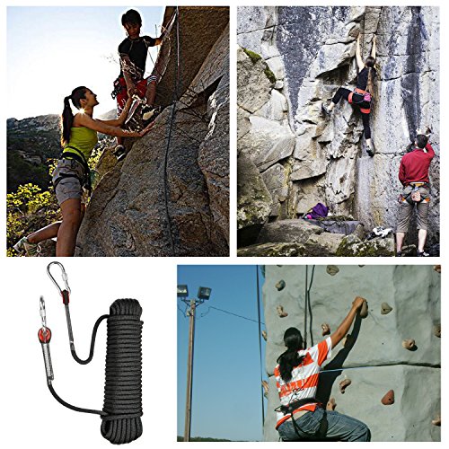 GINEE Rock Climbing Rope 32/64/96Ft,Outdoor Safety Rope,Black Strong Hanging Rope,Rescue Rope,C...