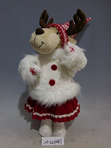 22" Standing Christmas Deer White Coat & Red Skirt