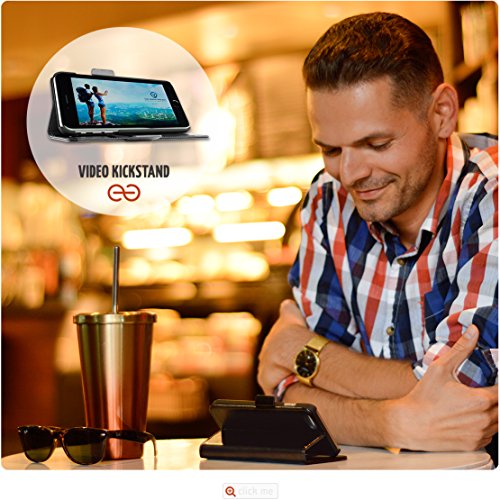 WORLD'S MOST FUNCTIONAL Wallet Case: RFID theft protection in three pockets; Easy-Open Clasp - simply open and close your wallet in a snap, no need to touch the clasp; Horizontal + Vertical stand, fully adjustable for hands-free video calls, reading, or movies anywhere; Comfortably carry 3-6 cards plus 5-10 bills