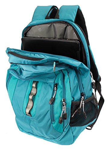 -. Feature : Padded laptop sleeve / Holds up to 15" laptops / Padded integrated tablet pocket / Padded and contoured shoulder straps / Multi-panel air flow back system