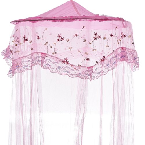 Housweety Princess Lace and Net Round Bed Canopy, 23.62 by 120-Inch, Pink