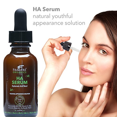 -. Title : FRAGFRE Natural & Organic Hyaluronic Acid Serum with Niacinamide 5% Vitamin B-3 + E, Avocado, Organic Aloe, Rosemary & Neem Anti Wrinkle Anti Aging Advanced HA Serum 1oz - Youthful Appearance Solution