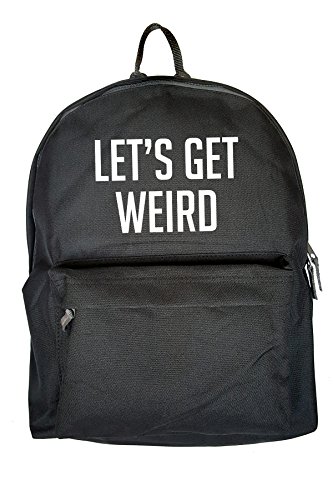 -. Brand : Teequote -. Color : Black -. Department : mens -. EAN : 0732059121886 -. Feature : Capacity: 18 litres / Delivery from Europe / 42 x 31 x 21 cm / Custom design print / Lightweight and durable -. IsAdultProduct : 0 -. ProductGroup : Apparel -. ProductTypeName : LUGGAGE -. Title : Let's Get Weird Print Backpack Rucksack Casual Daypack Black Bag -. UPC : 732059121886