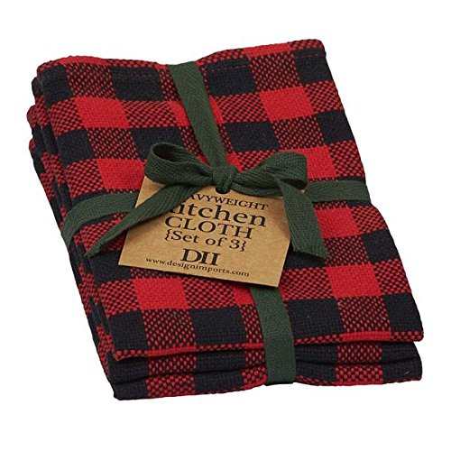 -. Feature : Design Imports Logger Checks Dishcloth Set of 3 / Heavyweight, ultra absorbent, basket weave dishcloths. Set includes 1 of each color shown. / Made of 100% cotton for easy care / Each measures 13 x 13" / Machine wash cold separately • Gentle cycle • Tumble dry low • Low iron.