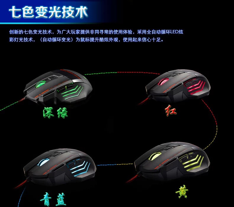 镭睿LR-GM02 炫酷7D七彩呼吸背光cfLOL游戏鼠标 USB有线鼠标