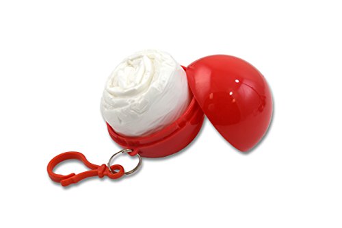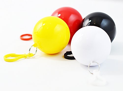 * FORGOT YOUR UMBRELLA? NO PROBLEM! Many of our customers keep this raincoat at home, one in the car, and one at work. Now you will never get soaked by a pop-up shower. Ponchos are stored in plastic balls that are red, yellow, white, and black.