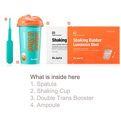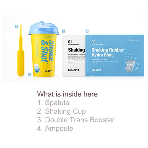 -. Binding : Misc. -. Brand : Dr. Jart -. Feature : Shake a cocktail give it a shot! / Material : Step 01. Double Trans Booster / Step 02 Hydro Liquid Ampoule / Spatula / Mixing Cup -. IsAdultProduct : 0 -. Label : Have & Be -. Manufacturer : Have & Be -. MPN : SRM -. PartNumber : SRM -. ProductGroup : Beauty -. ProductTypeName : BEAUTY -. Publisher : Have & Be -. Studio : Have & Be -. Title : Dr. Jart Dermask Shaking Rubber Modeling Mask Pack