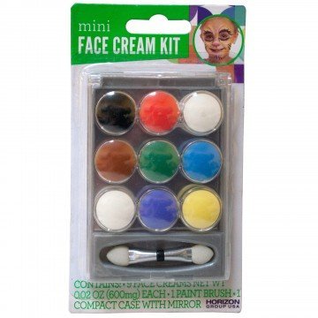 Create fun character designs and disguises for costumes with this Mini Face Cream Paint Set featuring 9 cream colors with a paint brush in a compact case with a mirror.