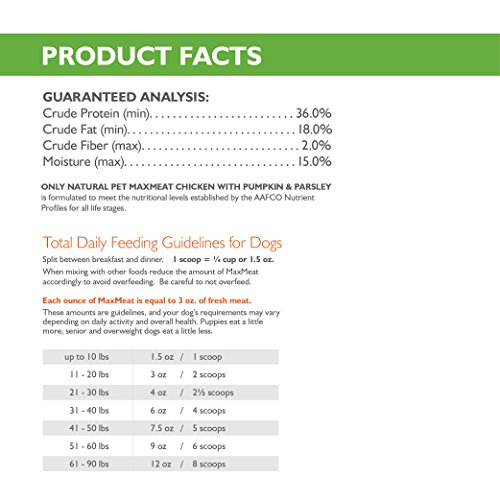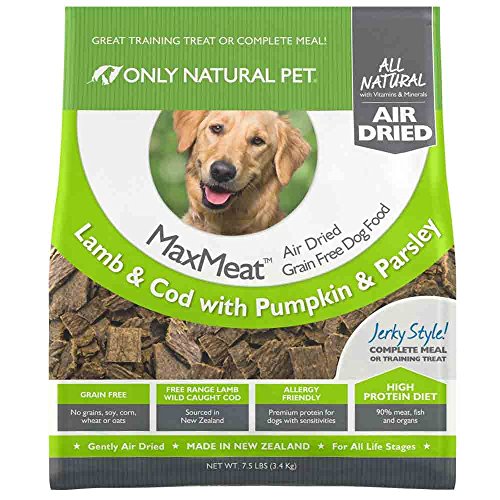 -. Feature : AIR DRIED - Air drying is a gentle process that briefly heats MaxMeat to 160°, allowing for the optimal balance of protein, nutrient retention and flavor. This unique process allows the thin, quarter sized slices of MaxMeat to be served as easily as kibble, only offer far superior nutrition. / GRAIN FREE - Paleo-inspired, high meat, high protein diet that follows the whole prey formula which mimics your dog's ancestral diet. All of the meat in these recipes is from New Zealand and raised free range without the use of added antibiotics or growth hormones; all of the cod is wild caught. / COMPLETE SOURCE OF REAL MEAT PROTEIN - Our recipe starts with the highest quality meat available, including muscle and organ meat because, in the wild, your dog's ancestors were eating the entire animal. This allows for a concentrated, bioavailable source of protein and amino acids. / PERFECT AS A COMPLETE MEAL, TREAT OR HIGH PROTEIN TOPPER - This dry dog food is made up of a carefully selected balance of natural ingredients great for a complete nutritionally packed meal, adding to kibble or canned foods as a delicious topping on food, and rewarding as a training treat. / SATISFACTION GUARANTEE - Only Natural Pet products always include a 100% Satisfaction Guarantee. Only Natural Pet uses only the highest quality ingredients in our dog foods and products. Providing you & your furry friend the highest quality products is our top priority.